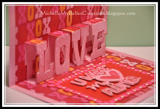 This is the card I created using the file. I have to run out and get some more Valentine paper, this is from last year. I created the heart frame in MTC, I also applied some heart glitter to the frame in between each heart. It looks great in person. I used the Swirl and Heart embossing folders also.